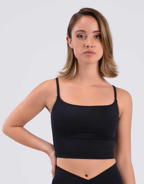 Brassière de sport Ester d'Intermezzo. Modèle flatteur avec large ceinture à la taille. Bonnets amovibles en taille adulte. . Logo blanc. Doublure douce.