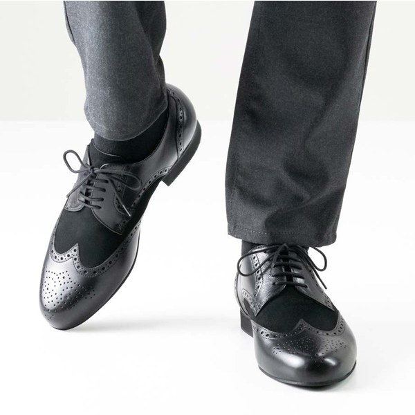 Chaussure de danse Remo de Werner Kern classique et élégante pour hommes dans une précieuse combinaison nappa/nubuk. Ce modèle convient spécialement aux pieds largesLe bout golf à l'avant perforé à la main donne à cette chaussure son aspect élégant. Le talon légèrement surélevé et biseauté associé au laçage confortable à 5 trous offre un ajustement optimal et sûr avec des oeillets cachés sans nickel. La chaussure est doublée de cuir de veau souple de qualité.