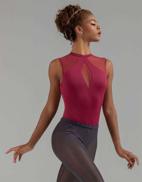 Crewneck Mesh Cut Out Open Back Leotard