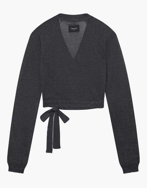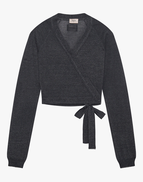 Cache-coeur S0729 de Repetto, conçu dans une maille pailletée élégante et légère. À nouer à la taille pour un style féminin et raffiné.